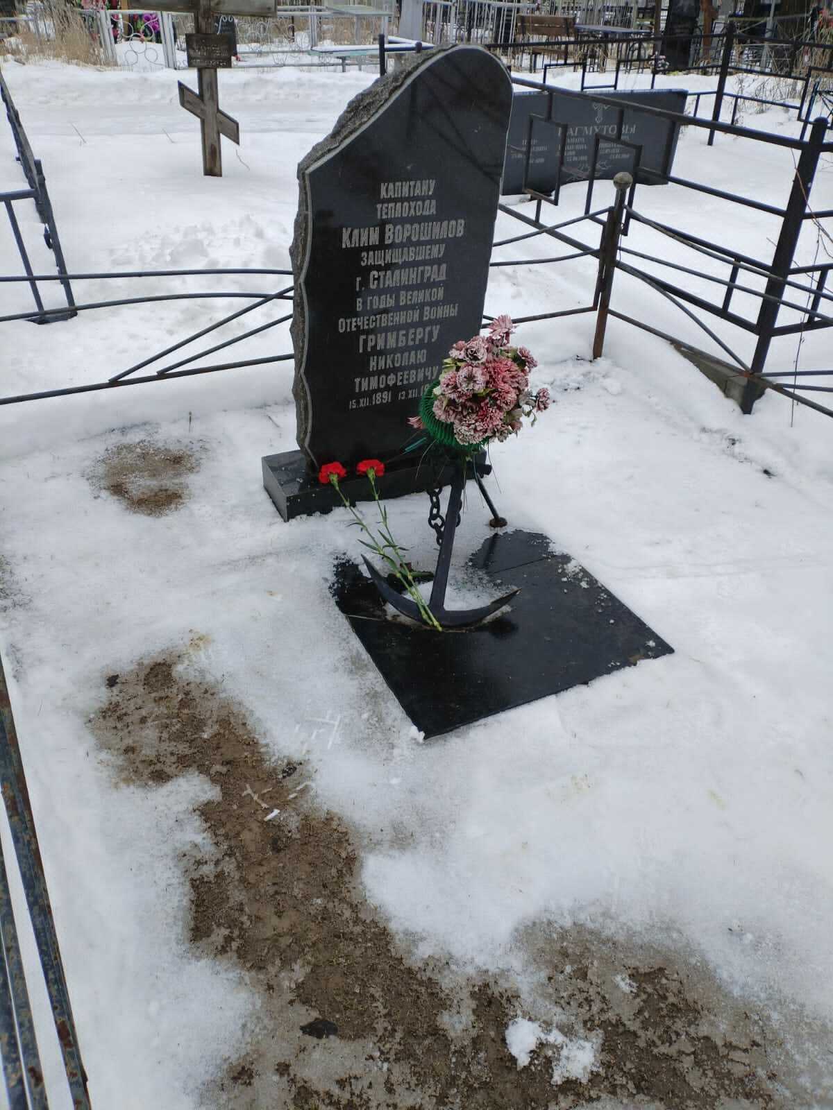Николай Гримберг скончался в 1956 году в Сталинграде. Со временем памятник на его могиле пришел в негодность. Члены его семьи, проживающие в Москве и Самаре, обратились к руководству предприятия "Память" с просьбой восстановить надгробие. На просьбу откликнулись. Несколько лет назад на благотворительной основе защитнику Сталинграда был установлен новый памятник. С тех пор работники "Памяти" регулярно ухаживают за могилой отважного капитана.